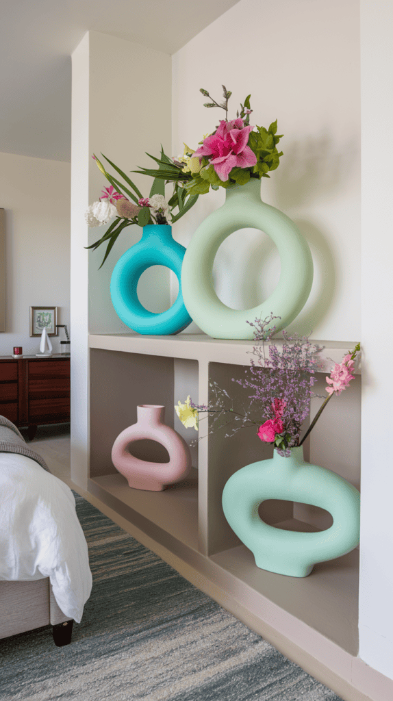 Decorative vases in trendy shades can transform your bedroom with a fresh feel. Try using a striking turquoise or soft green vase to add a splash of color. Pair them with bright flowers for an easy and cheerful update!