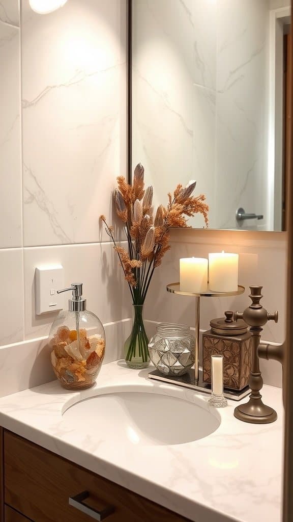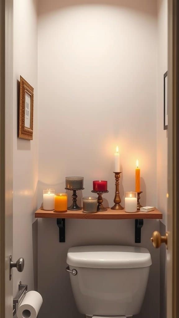 Candles can transform a small bathroom into a cozy retreat. They add warmth and a touch of elegance without taking up too much space. By using different heights and colors, you can create a beautiful arrangement that serves as both decor and ambiance.