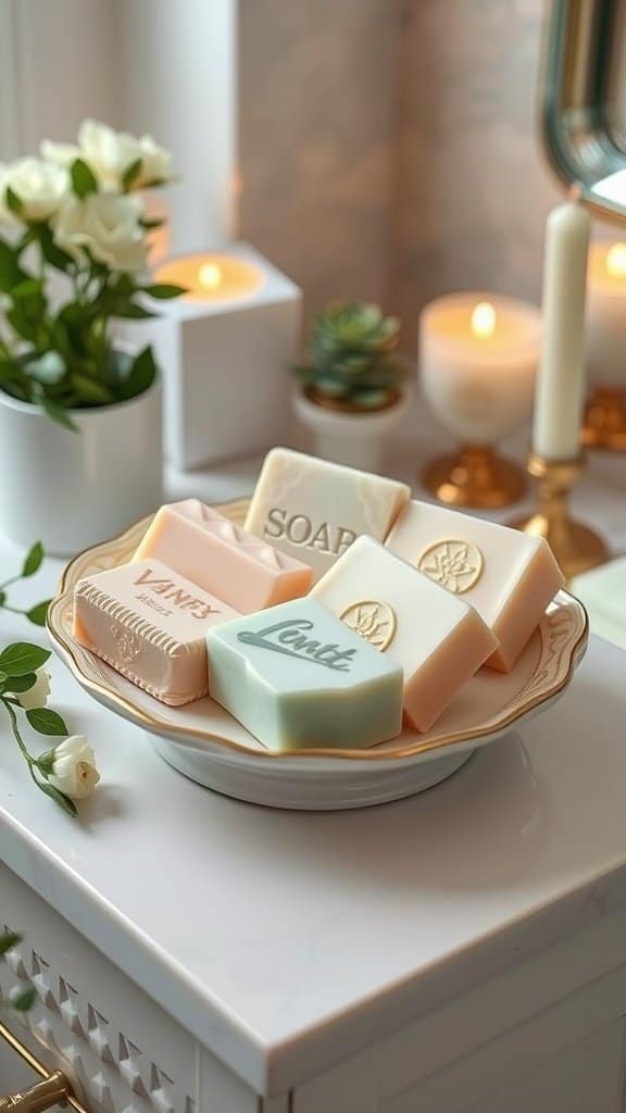 Decorative soap bars can effortlessly enhance the charm of a small bathroom. Choosing a variety of colors and styles allows you to express your personality. A simple dish can hold these soaps, turning them into a lovely focal point.