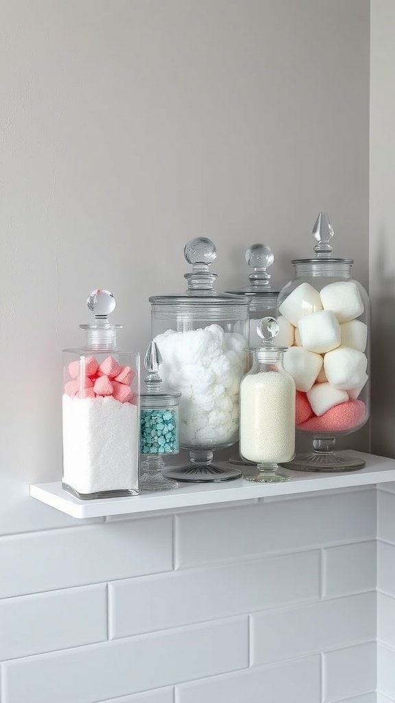 Glass apothecary jars are a stylish way to store bathroom essentials. They come in various sizes and shapes, making it easy to find the right ones for your space.