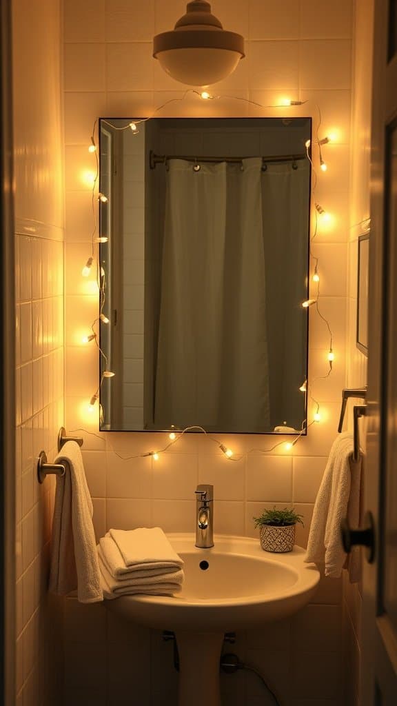 Adding LED string lights or fairy lights to your small bathroom can instantly elevate its charm. These lights create a warm and inviting atmosphere, making your space feel cozy and personal.