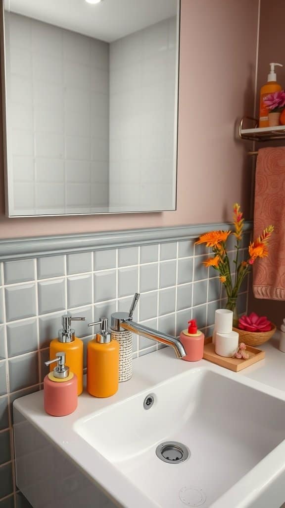 For a quick update, consider adding colorful bottles or decorative planters. This small change can make a big impact, creating a lively and inviting atmosphere in your bathroom.