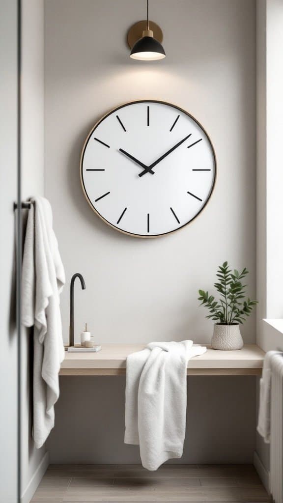 Consider hanging the clock at eye level, making it easy to see while you’re getting ready. Pair it with other minimalist decor, like a small plant or neatly arranged towels. This creates a cohesive look that feels inviting without being cluttered.