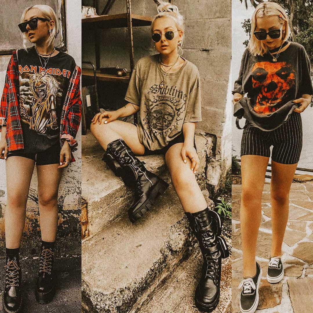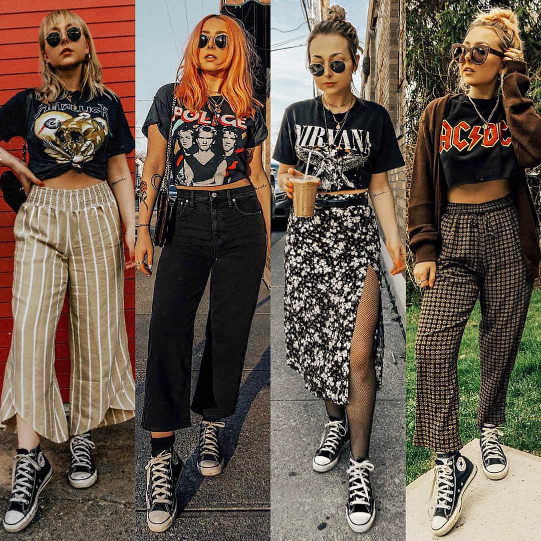 This is the starting point for basically every outfit in this aesthetic. A vintage band tee that is a little too big, a little faded, and a little worn. The band does not matter. I’m serious – nobody is checking.