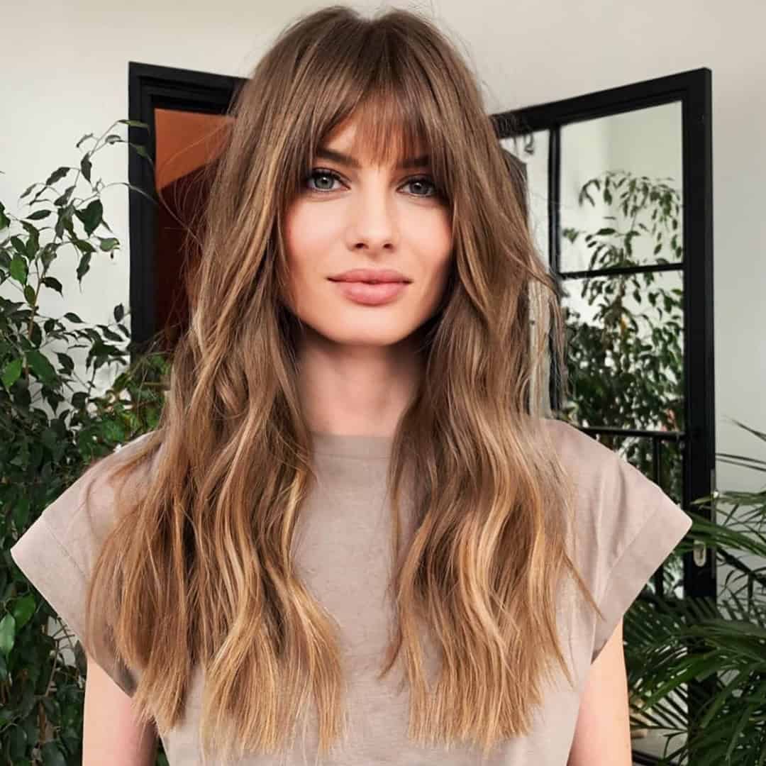 Curtain bangs keep showing up in this aesthetic and really I get it. They’re soft, they’re 70s, and they work on almost everyone. If you’ve been going back and forth on getting them, this is probably the push you needed.